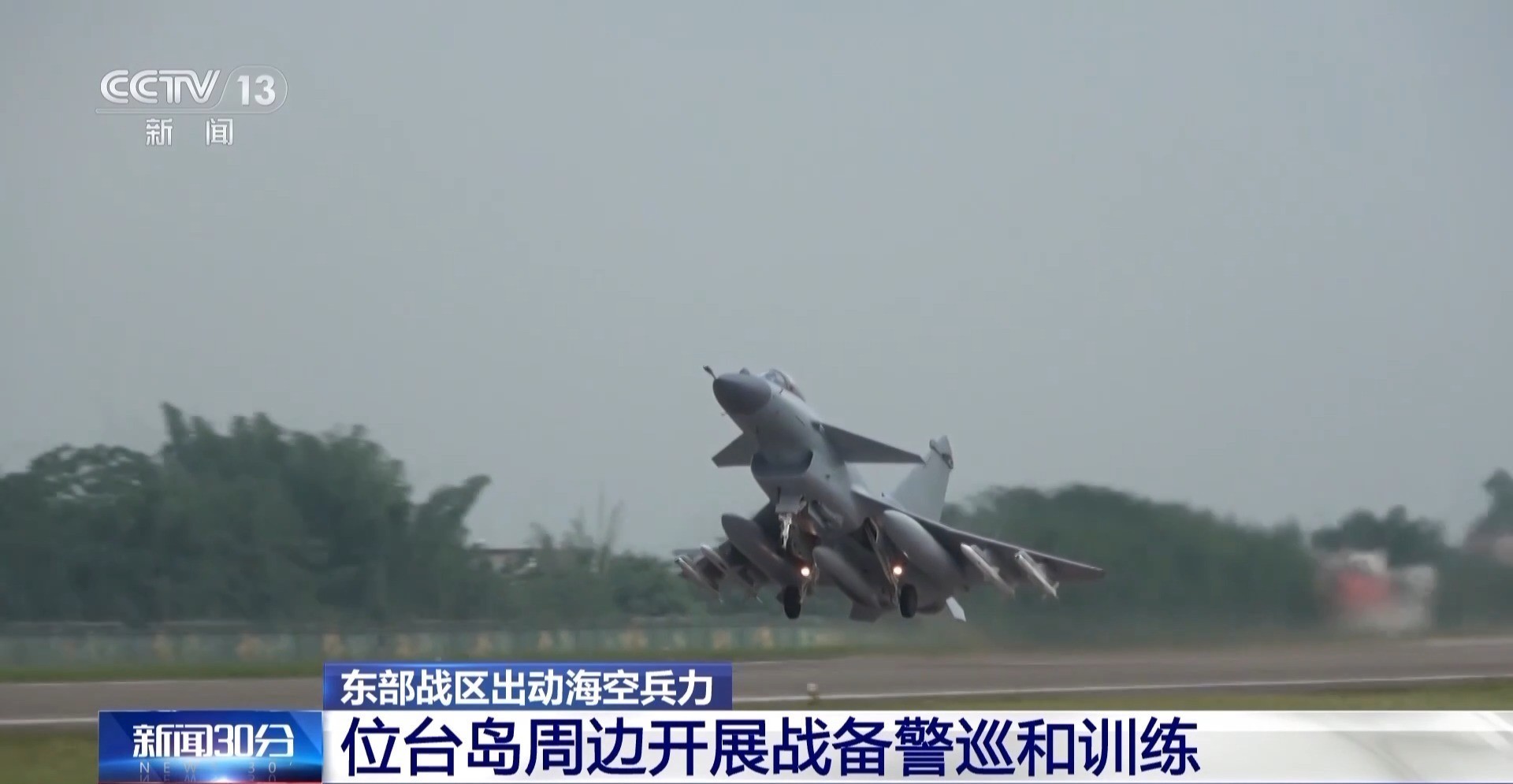 在东部战区空军某场站,多批次歼-10C战机依次起飞,前往台岛周边空域执行警巡任务。